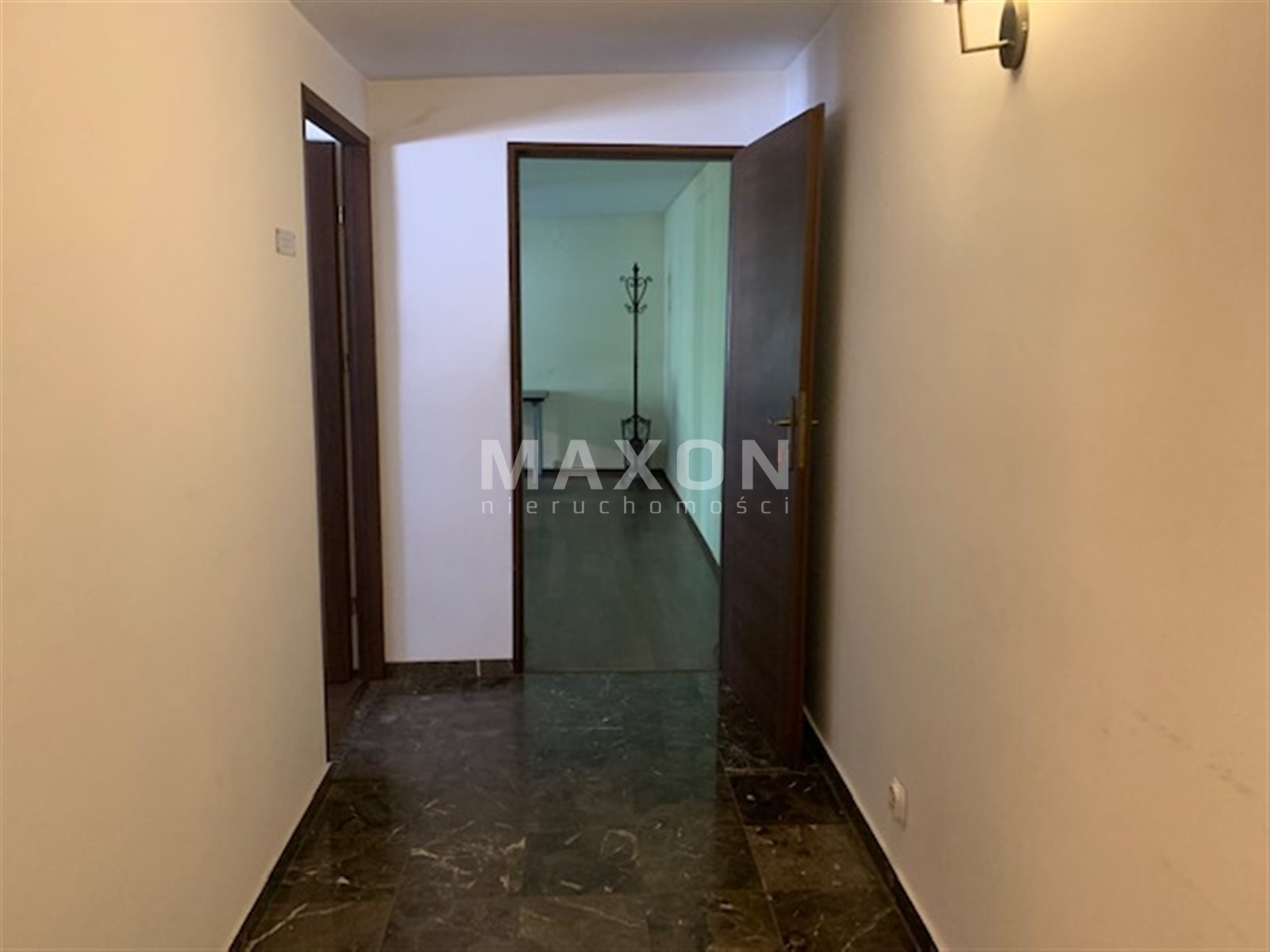 - Elegant hall lined with marble tiles,