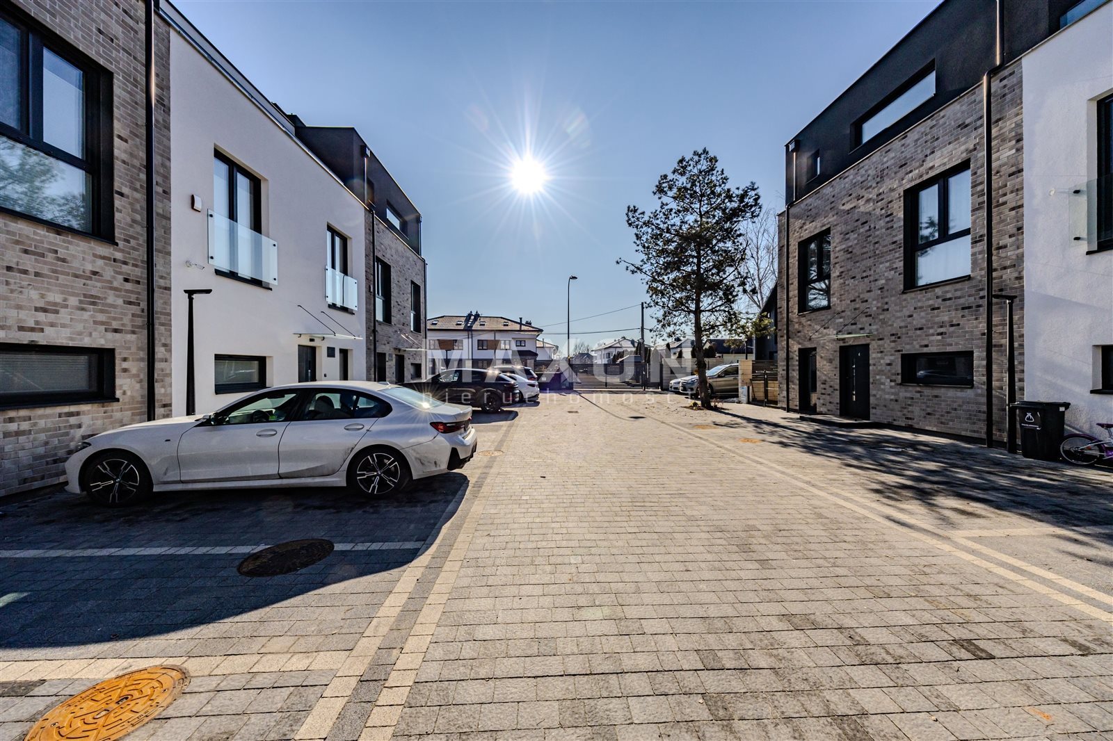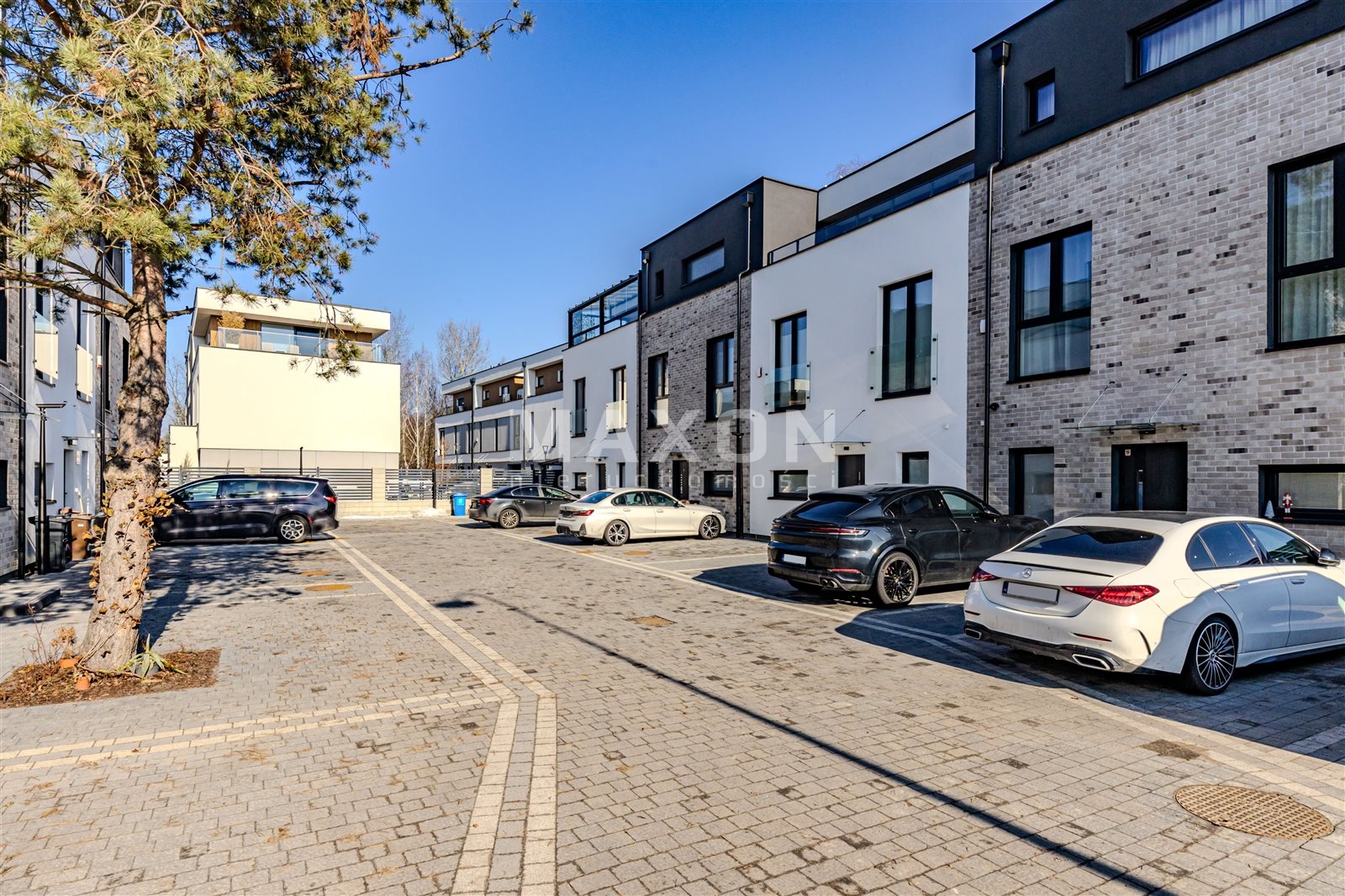 The house is located on a quiet street, surrounded by single-family homes, with quick access to Wał Miedzeszyński, Trasa Siekierkowska, and the Southern Ring Road.