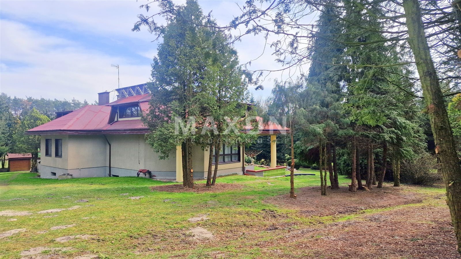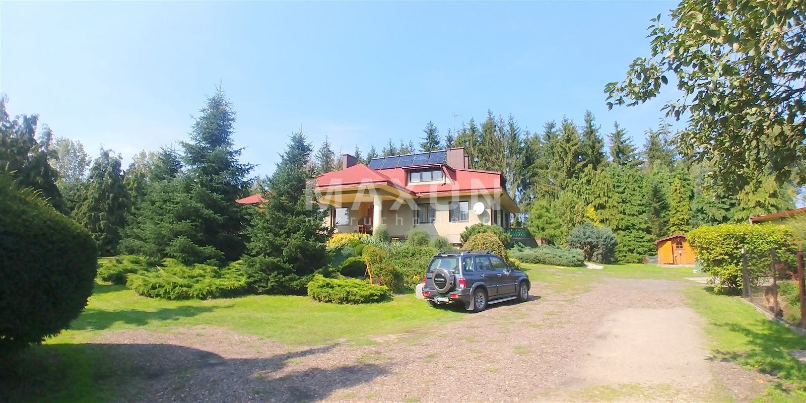 The property is situated in a quiet and green area, with direct access to the Widawka River shoreline, which further enhances its recreational and investment value.
