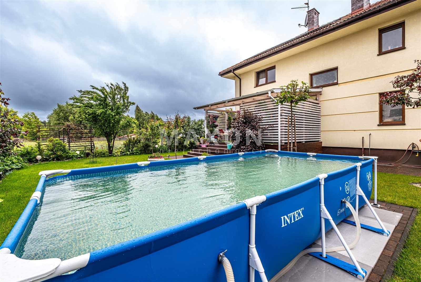 The house has 189mkw area, 5 rooms, 2 closets, pantry, two-car garage, it is located on a plot of area. 582mkw