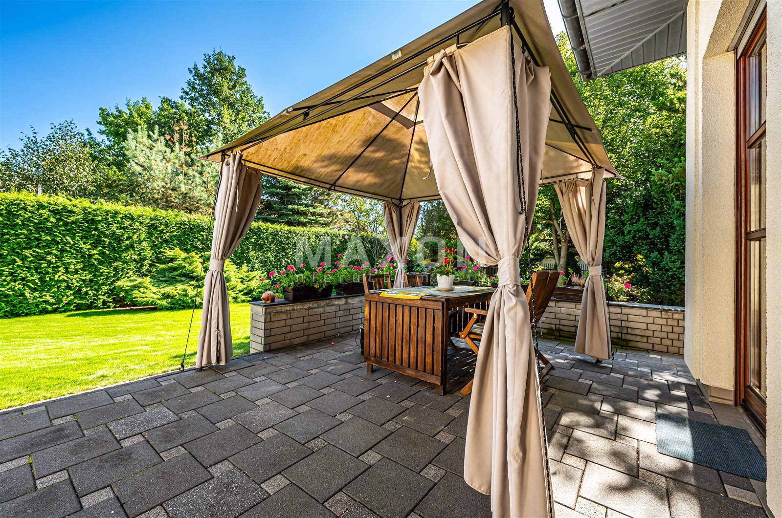 I would like to invite you to familiarize yourself with the offer for the sale of a single-family house in Dabrowa Chotomowska. This is a detached house with an area of 183.58 sqm located on a plot of 1000 sqm in a quiet and green area.