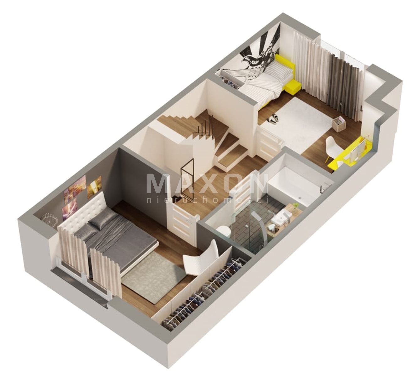 Modern, terraced building, high standard. Developer's finish. Each apartment comes with two parking spaces and a garden with a view of the forest and park area. The investment will be completed in the first half of 2026.