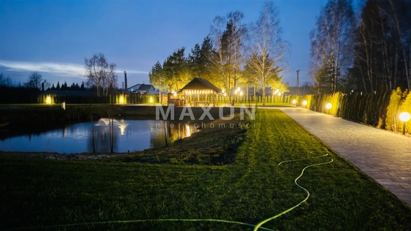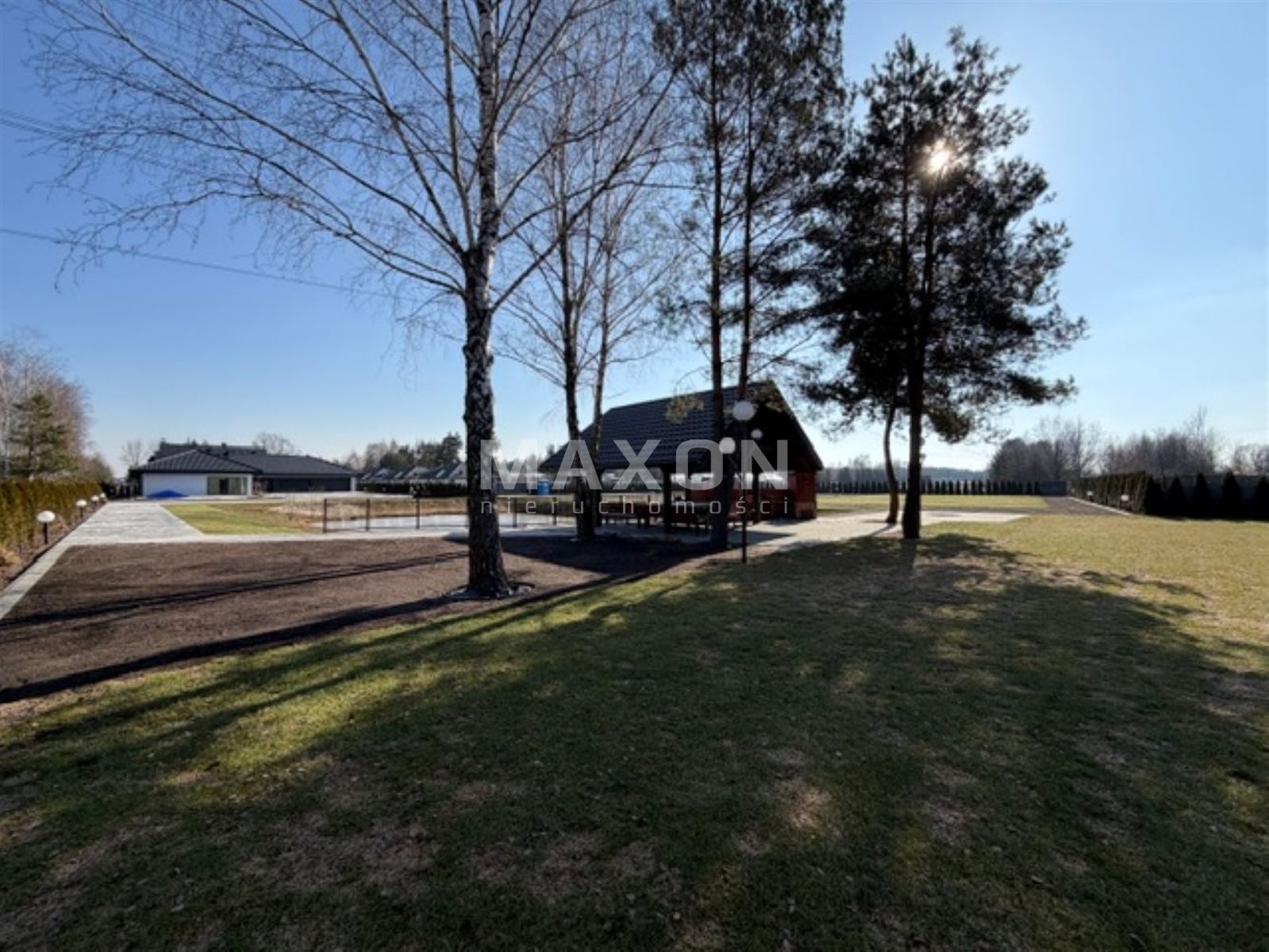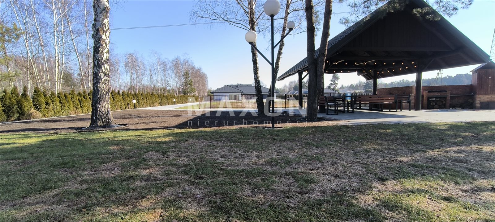 The property is located close to the Zegrze Reservoir, a well-known holiday destination for Warsaw residents. Quick access to Warsaw is an additional advantage of this location. The garden is landscaped, has a stocked pond, space for a swimming pool, jacuzzi, sauna, and beautiful plantings, old trees that create an amazing atmosphere, and well-maintained grass. An automatic irrigation system is installed in the garden. The plot has separate zones, each with a separate entrance gate.