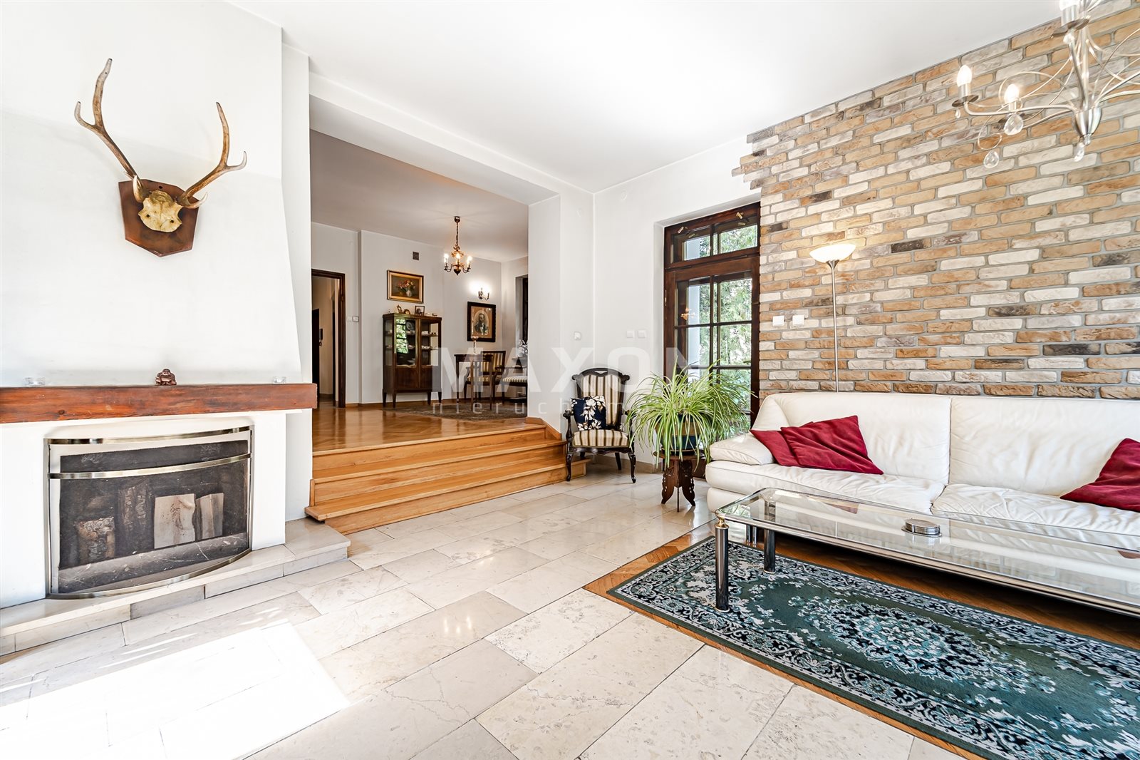 On the floor - parquet and marble,