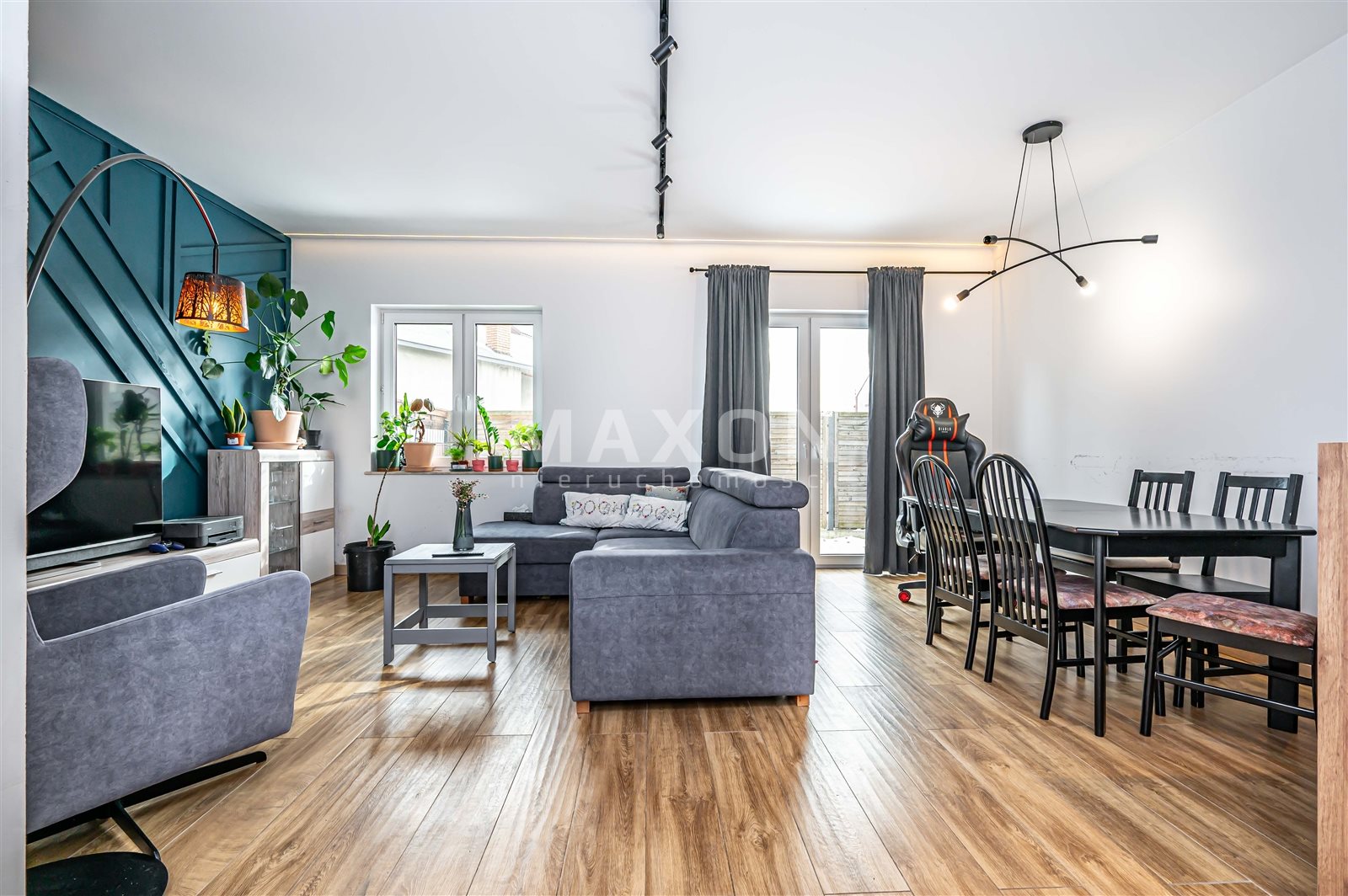 The living room opens onto a large corner garden – perfect for morning coffee, barbecues or a trampoline for the kids.
