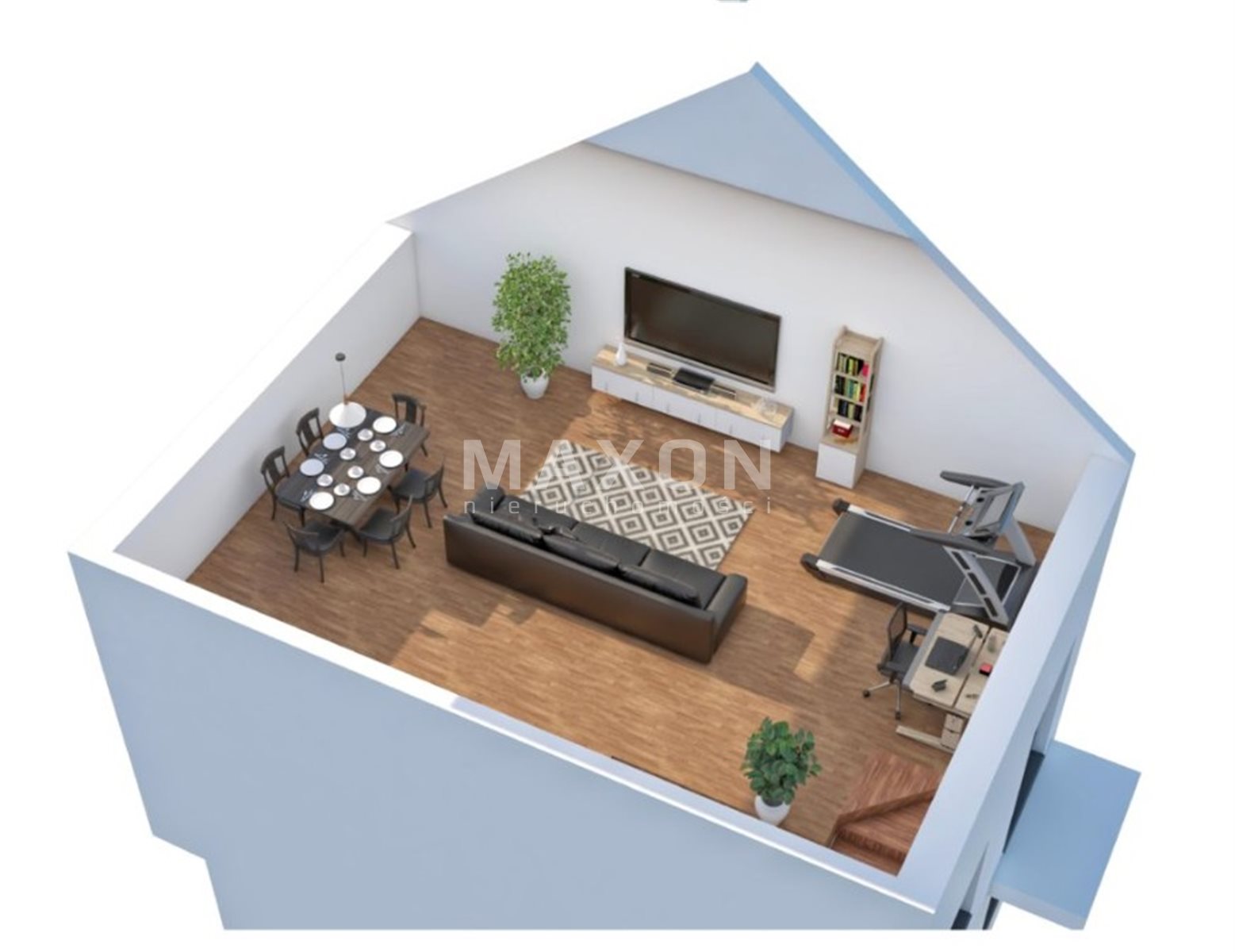 The well-thought-out layout ensures comfort for every member of the household.Second level – high, well-lit attic: Currently an open space (approx. 34 m²) with a bedroom and separate wardrobe.