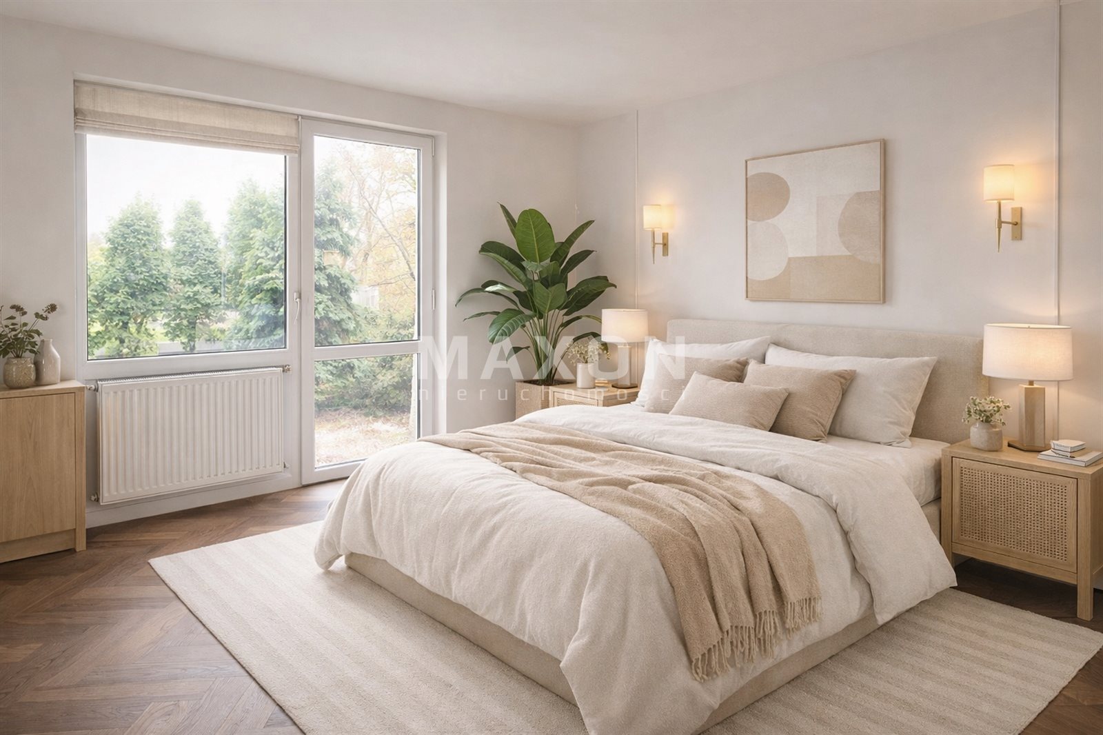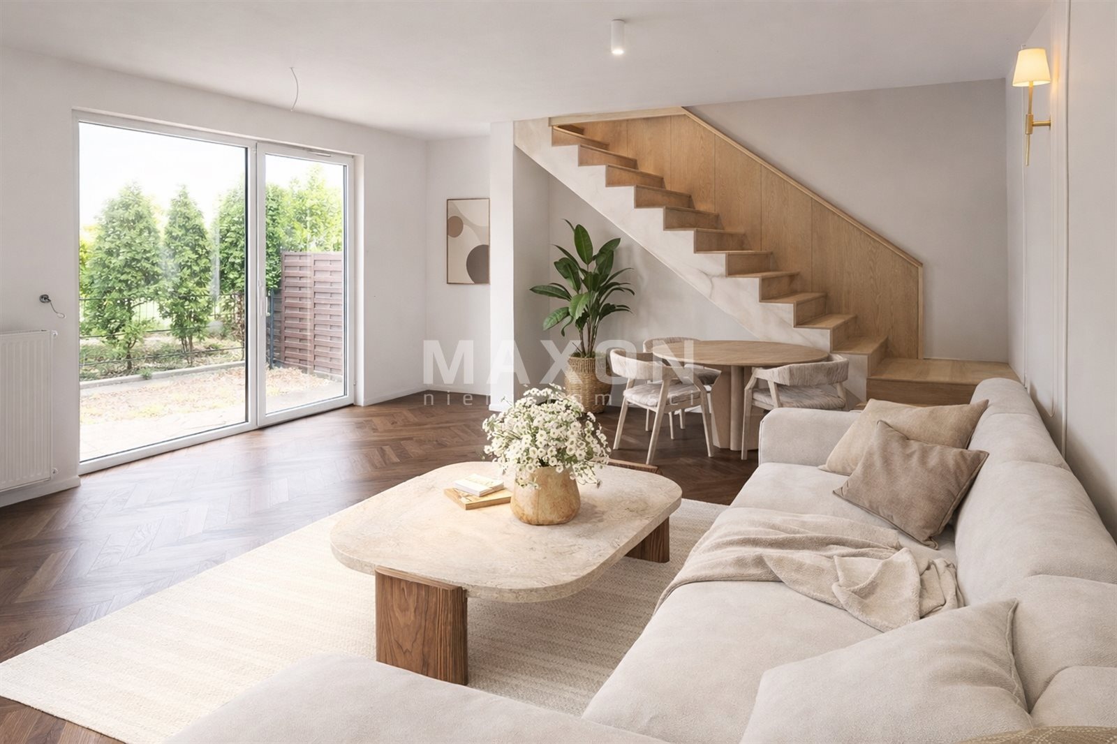Wide window with access to the terrace - connecting the interior of the house with the garden.