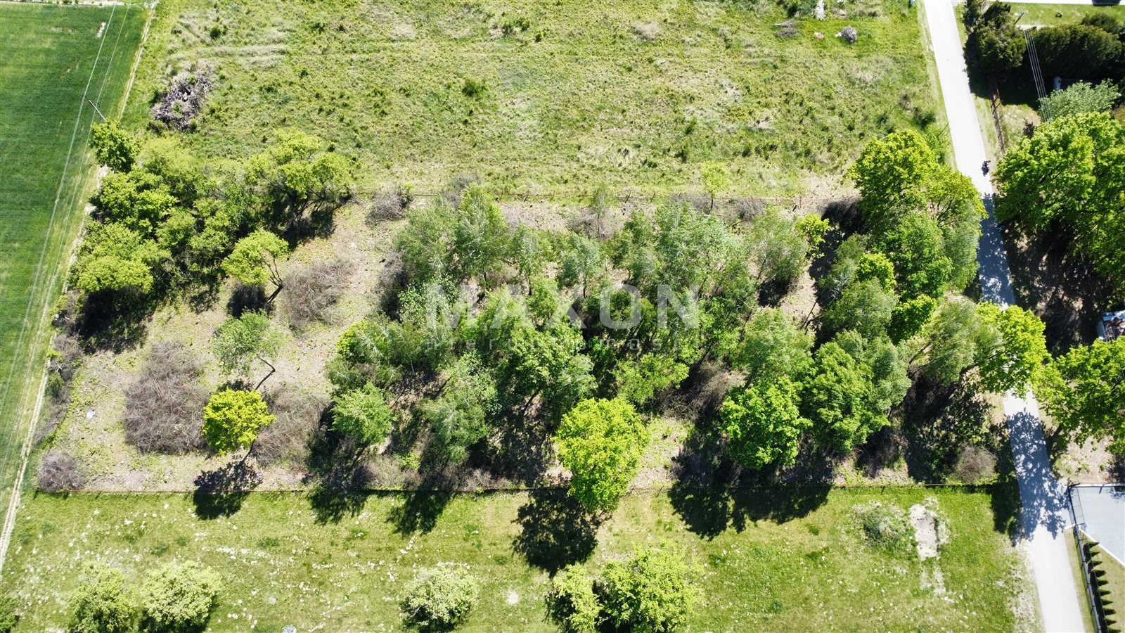 The plot has a flat terrain, a regular rectangular shape (with approximate dimensions: width 38 m, length 113 m), and is fenced. It has direct access to a public road; access to the plot is via a well-maintained asphalt road.